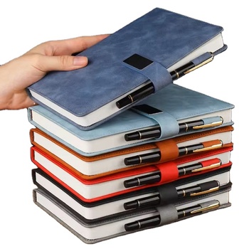 Logotipo de impresión personalizable planificador de revistas de tapa dura A5 Cuadernos de negocios de cuero Pu con elástico